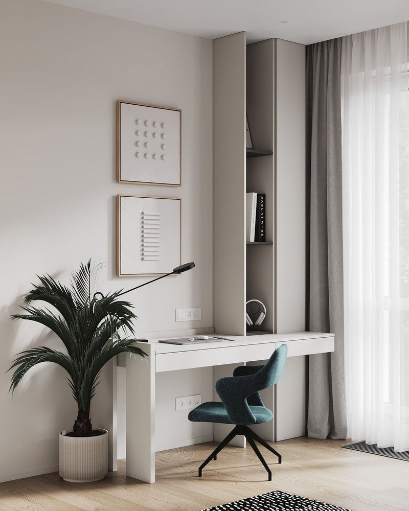 Embrace the art of tranquility as your workspace transcends clutter, inviting clarity and purpose.